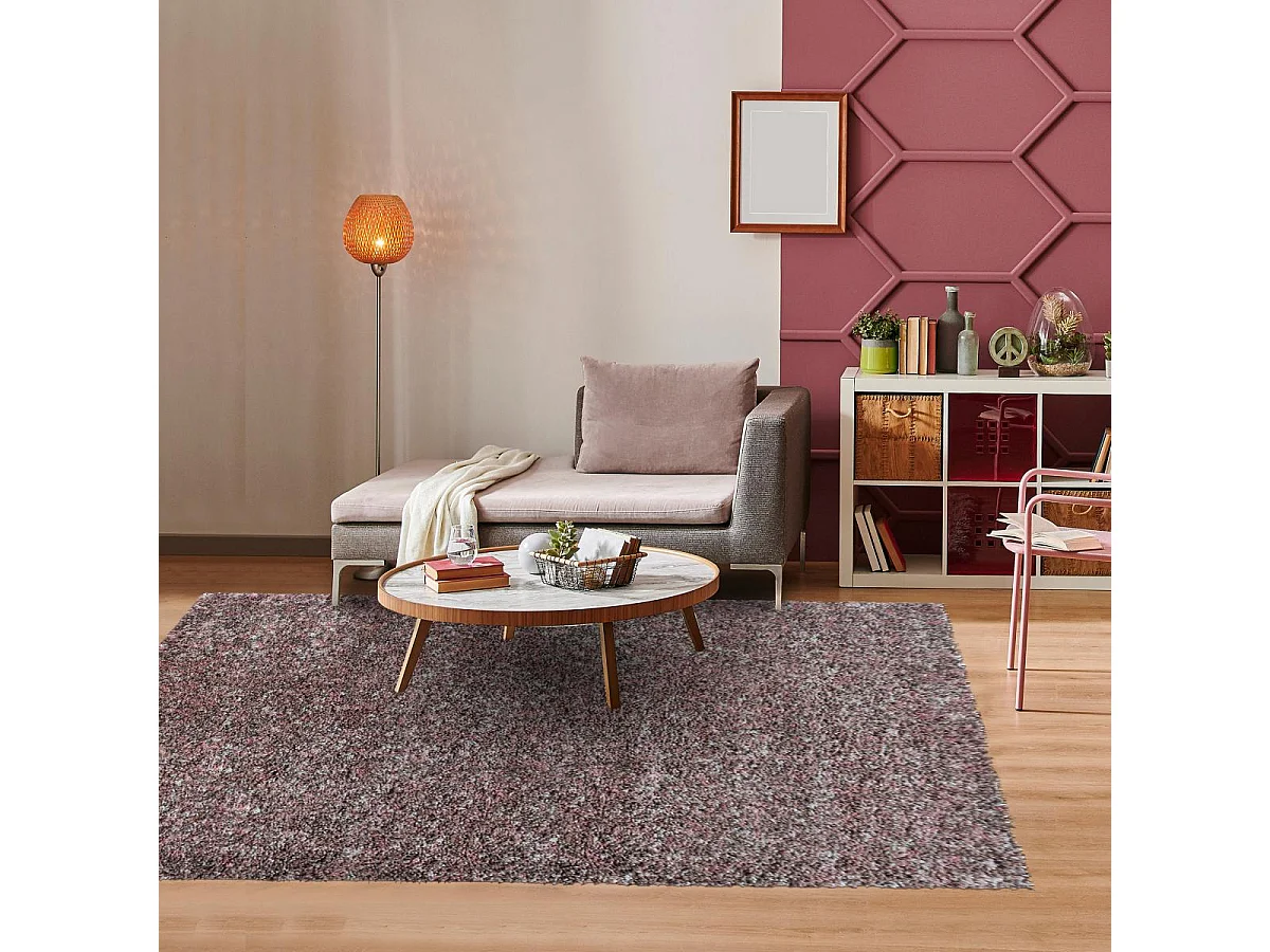 Tapis poils longs shaggy 160x230 rectangle tissé vieux rose motif faux uni