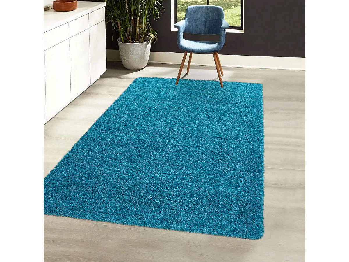 Tapis poils longs shaggy 65x130 rectangle tissé bleu motif uni UNI C